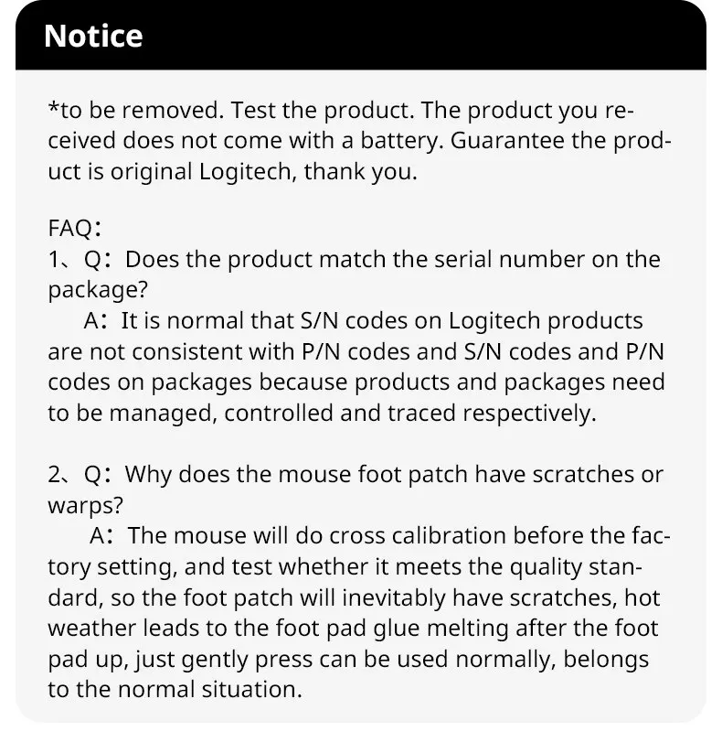 Aviso: Devido a restrições logísticas internacionais. A bateria tem de ser removida. Teste o produto. O produto que você recebeu não vem com uma bateria. Garantir que o produto é original Logitech, obrigado.